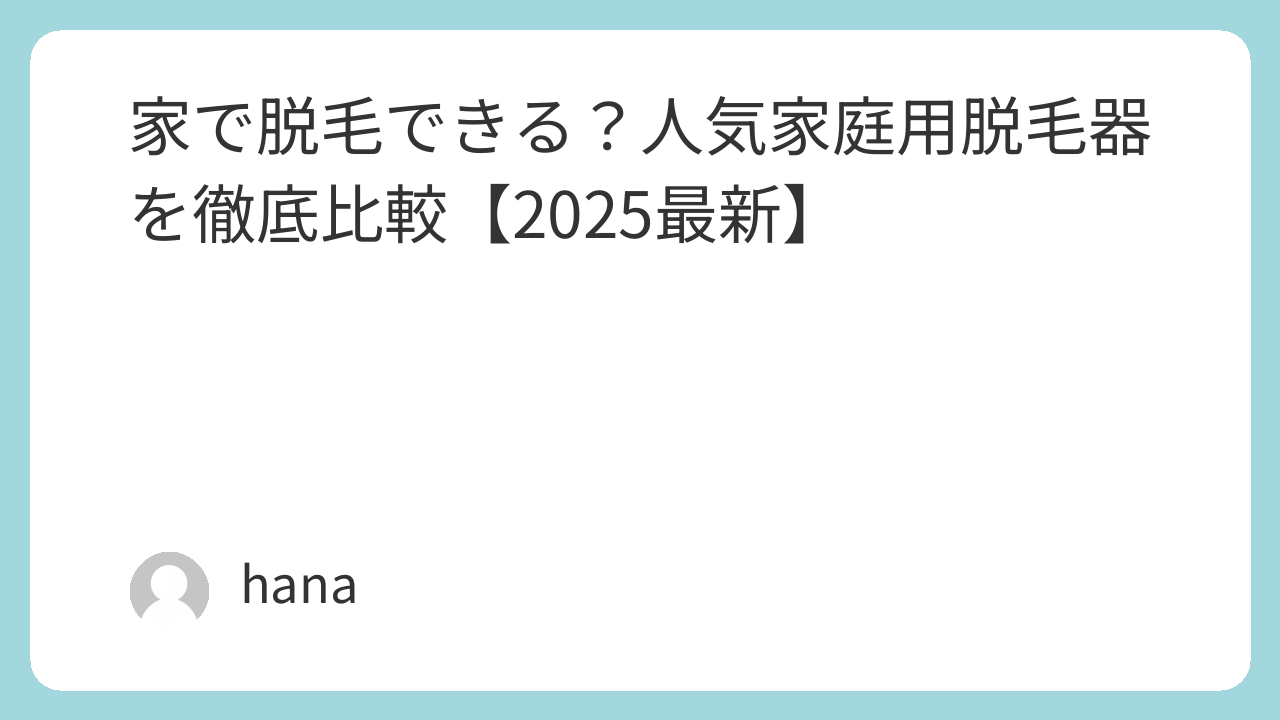【2025年最新】家庭用脱毛器おすすめランキング|選び方&効果を本音で解説【医療脱毛とどっちがいい?】