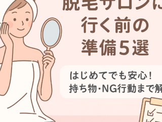 脱毛脱毛サロンに行く前の準備5選|初心者が安心して通うための完全ガイド 脱毛サロンに行く前の自己処理や保湿、持ち物などの準備をわかりやすく解説。初めての脱毛でも安心できる完全ガイド。 2025.07.27脱毛
