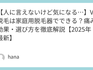 脱毛【人に言えないけど気になる…】VIO脱毛は家庭用脱毛器でできる?痛み・効果・選び方を徹底解説【2025年最新】 家庭用脱毛器でVIO脱毛はできる?痛みや効果が心配な方へ向けて、選び方・注意点・おすすめ機種をわかりやすく解説します。 2025.07.25脱毛