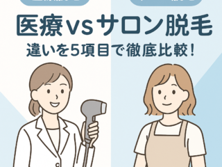 脱毛初めてでも安心!医療脱毛とサロン脱毛の違いを徹底比較【2025年最新版】 医療脱毛とサロン脱毛、どちらを選べばいい?料金・効果・痛み・回数・安全性を5項目で徹底比較。脱毛初心者もこれで安心! 2025.08.29脱毛