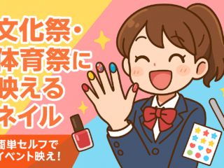ネイル文化祭・体育祭におすすめ!映えるネイルデザイン10選 文化祭や体育祭で写真映えするネイルデザインを紹介!学生でも簡単にできるセルフネイルのアイデアやカラー選び、注意点をまとめました。思い出に残るイベントにぴったりのネイルが見つかります。 2025.08.22ネイル