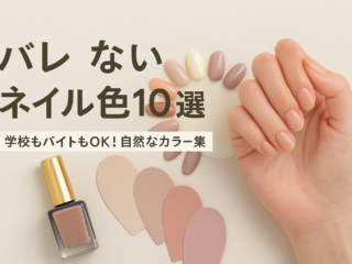 ネイルバレないネイルカラー10選|学校やバイトでもOKな自然カラーまとめ 学校やバイトでネイルがバレたくない方必見!この記事では、周囲に気づかれにくいナチュラル系のネイルカラーを10色厳選。おすすめブランドや選び方のコツも紹介します。 2025.08.04ネイル